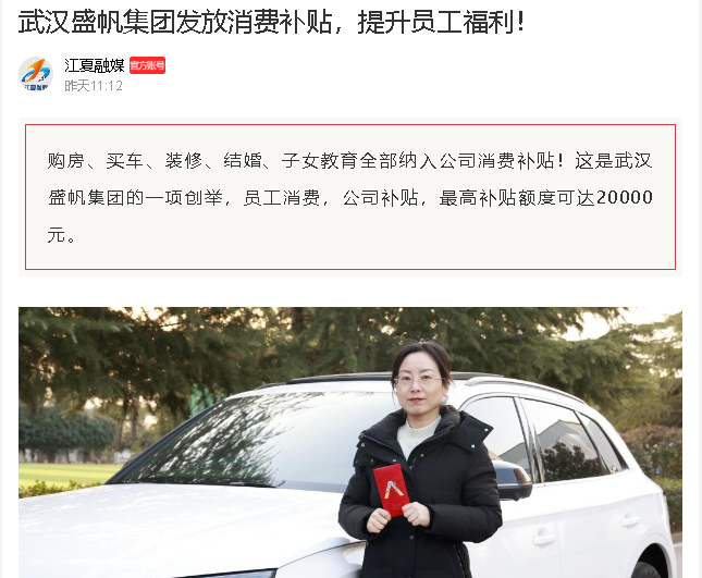 购房、买车、装修、结婚、子女教育全部纳入公司消费补贴!你没有听错,在武汉十大网投平台,员工消费,公司补贴,最高补贴额度可达···